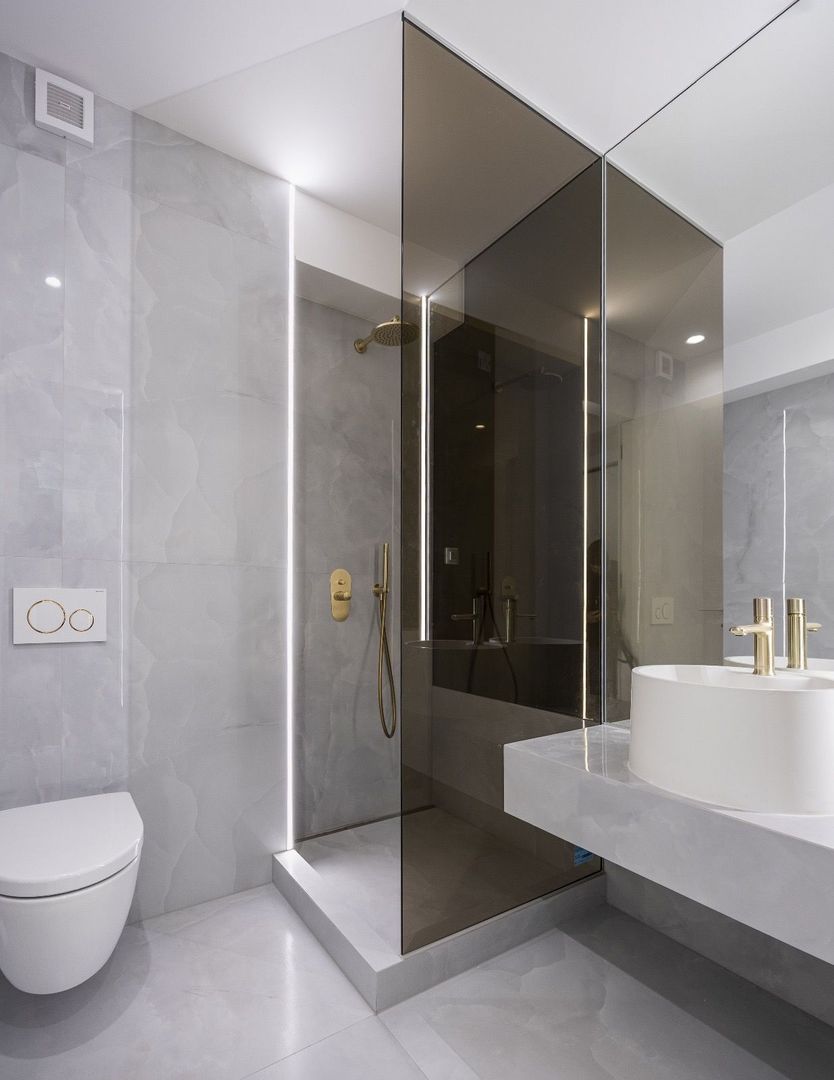 Baie modernă, cu finisaje premium și cabină de duș walk-in