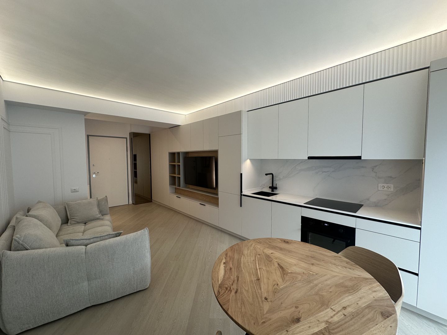 Complet mobilat și utilat modern – mobilă custom made, electrocasnice premium, finisaje impecabile.