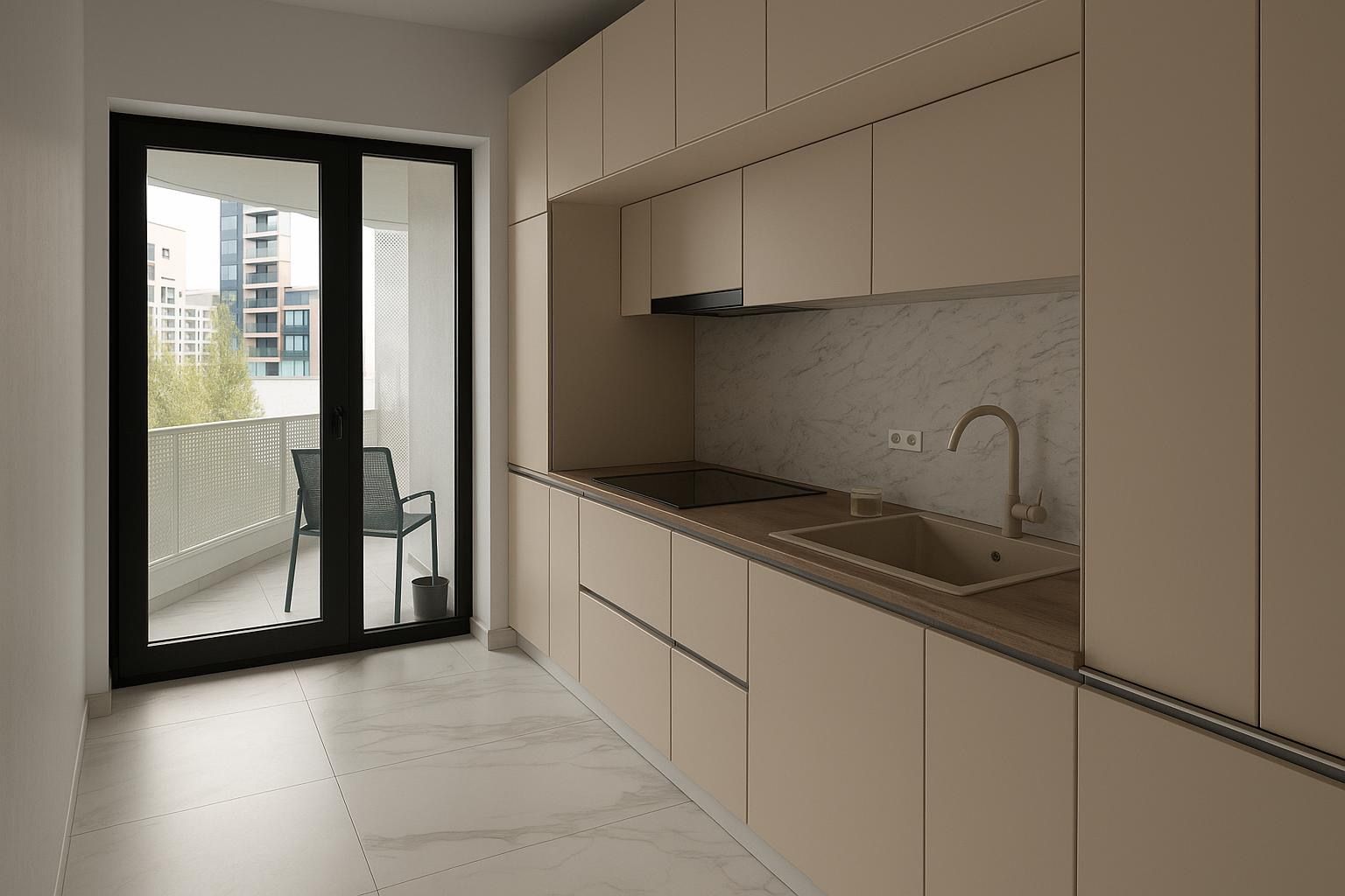 Compartimentare: living spațios cu zonă de dining, dormitor matrimonial, bucătărie open-space complet mobilată și utilată, baie modernă, balcon generos