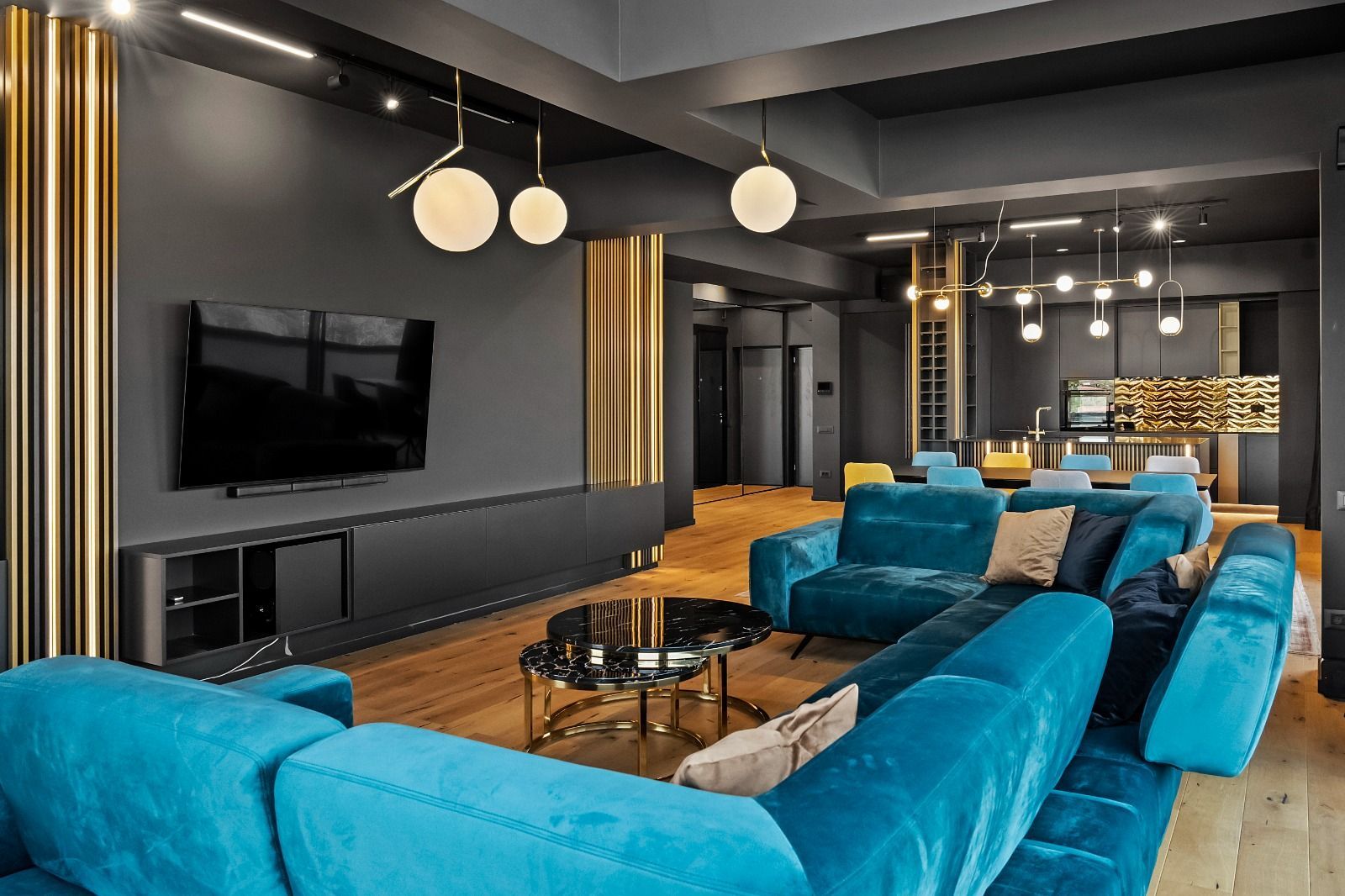 • Compartimentare: 3 camere (living spațios, bucătărie open-space, 2 dormitoare, 2 băi moderne, vestibul )