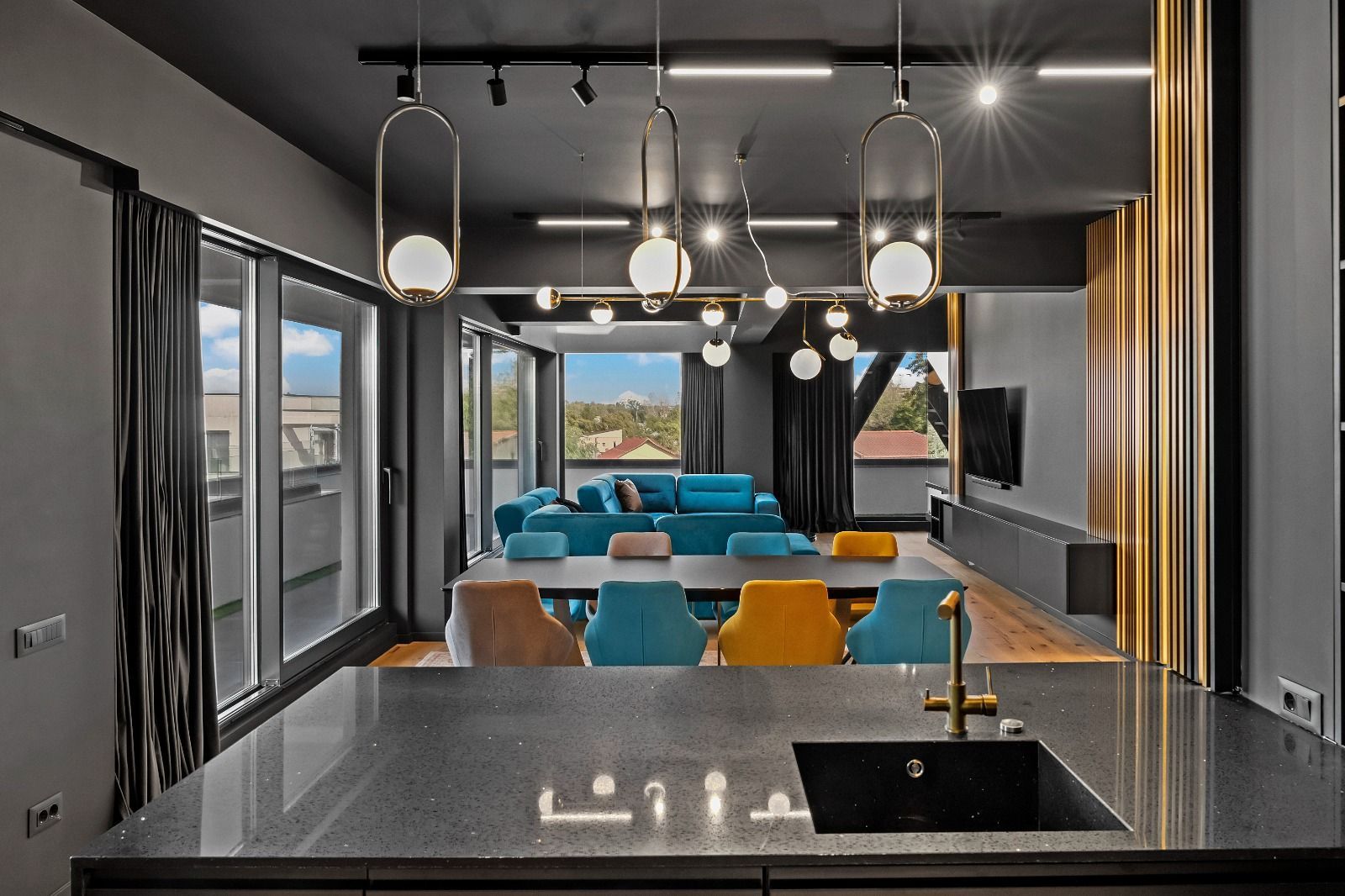 • Compartimentare: 3 camere (living spațios, bucătărie open-space, 2 dormitoare, 2 băi moderne, vestibul )
