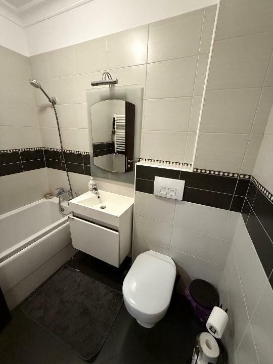 • Baie modernă cu cabină de duș, mobilier suspendat și finisaje premium