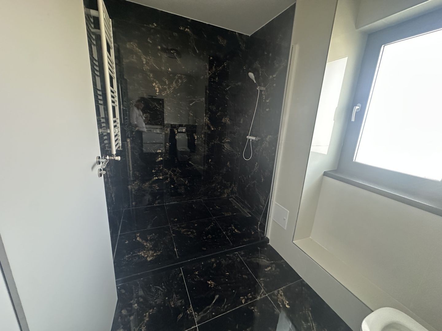 O baie generoasă de 5,8 mp ce deservește cele două dormitoare.