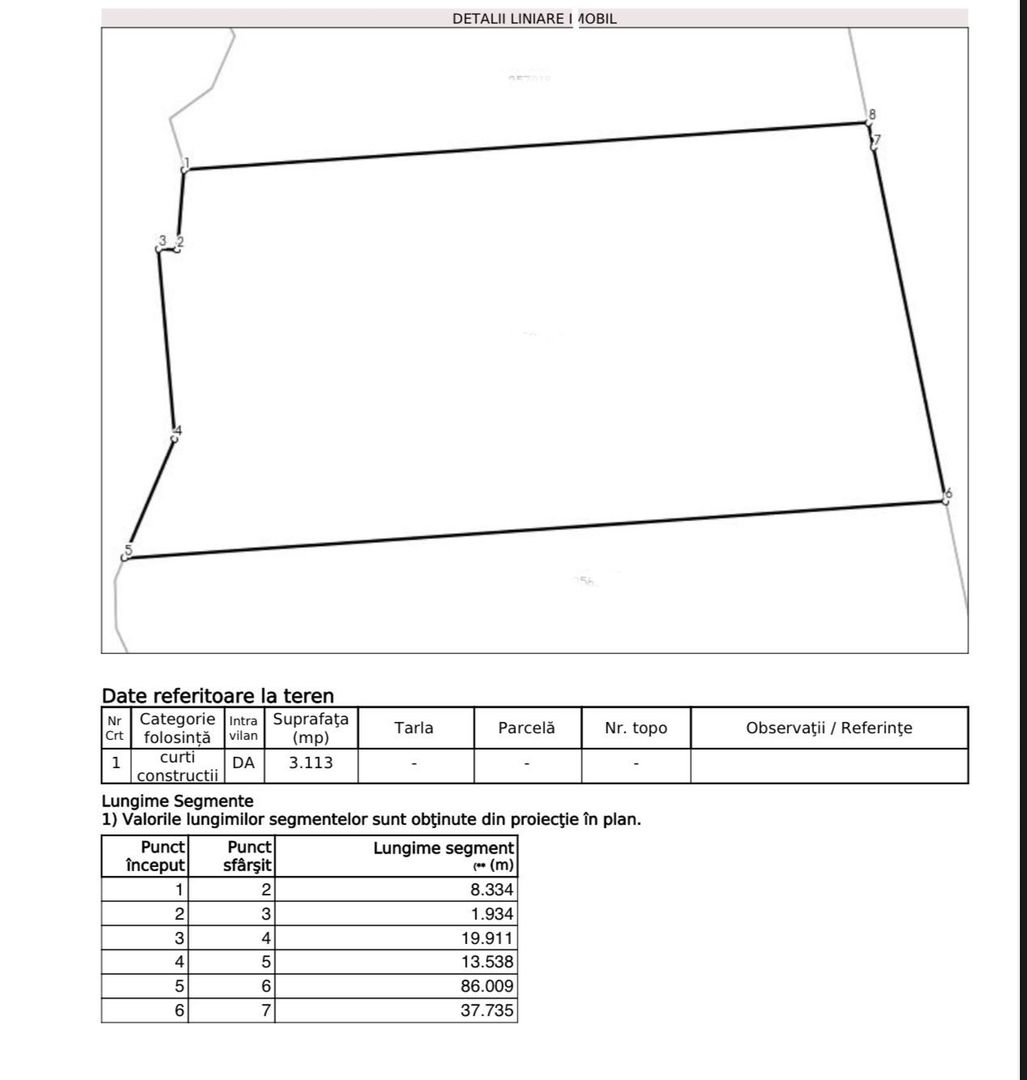 Suprafața totală a terenului este de 3113 mp, având o deschidere generoasă de 38 m la bulevard, ceea ce îi conferă o vizibilitate excelentă și multiple posibilități de dezvoltare.