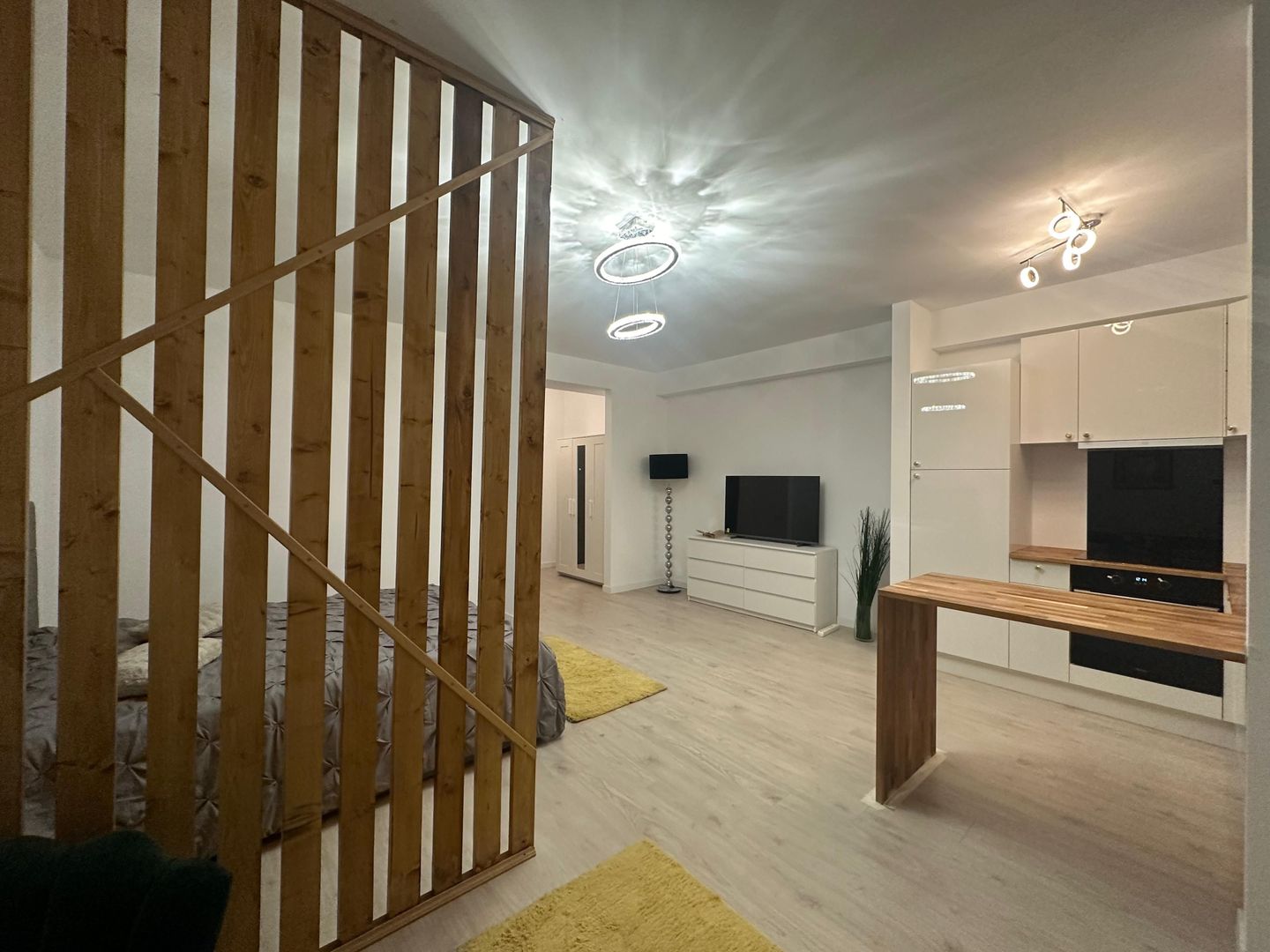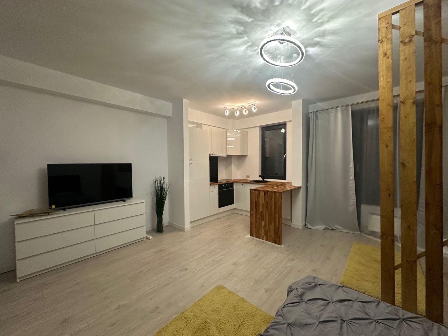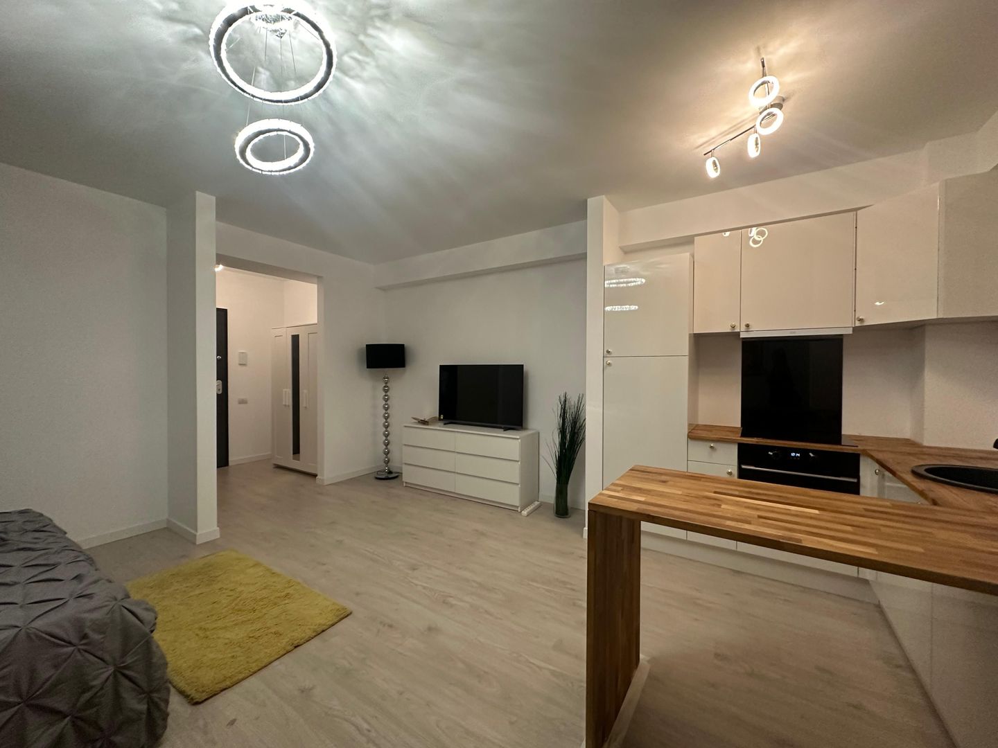 Compartimentare: Studio elegant, cu o împărțire optimă a spațiului. Zona de living este deschisă și luminosă, iar bucătăria este complet utilată.