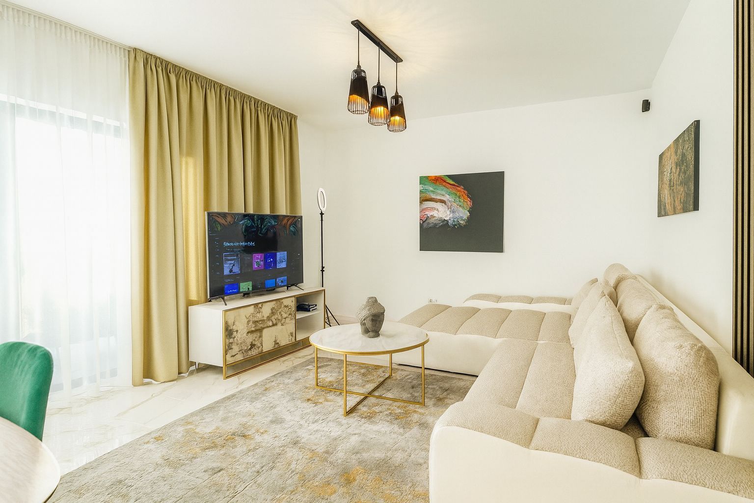 Vă propunem spre închiriere o vilă modernă, situată în complexul rezidențial Millo Village, o zonă exclusivistă și liniștită, perfectă pentru familii sau pentru cei care apreciază confortul și intimitatea.