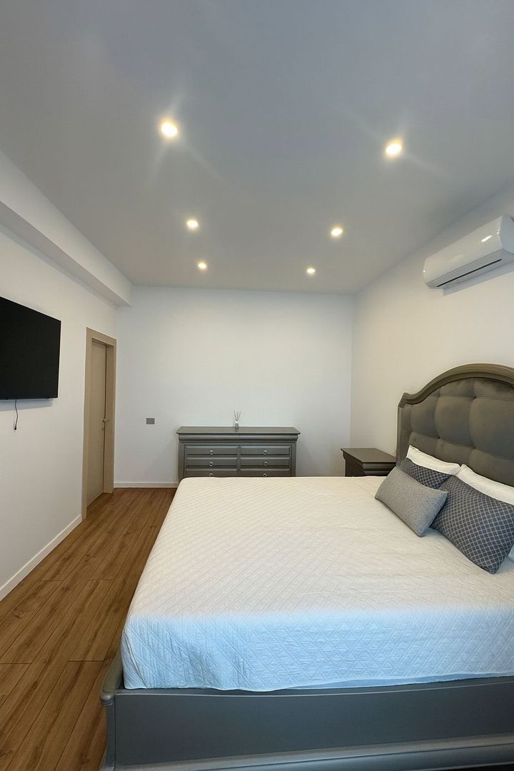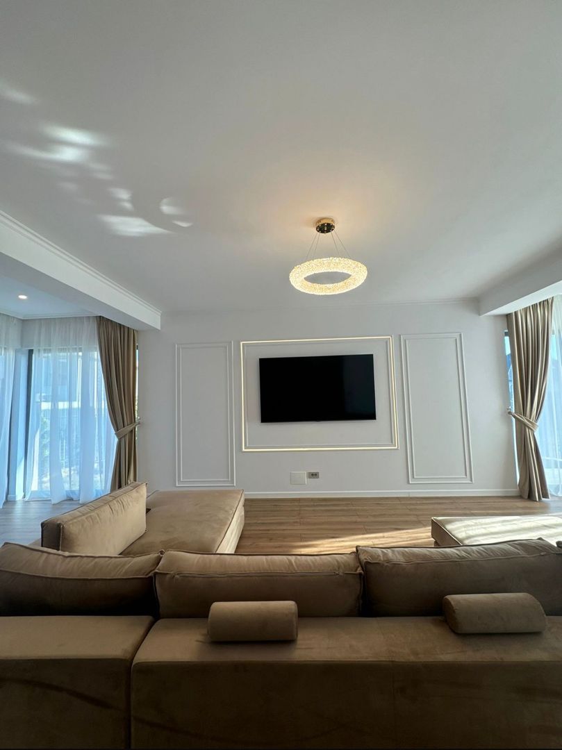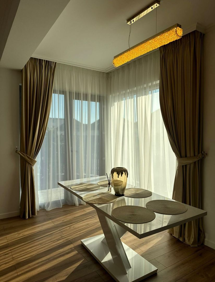 Proprietatea dispune de 3 dormitoare luminoase, fiecare cu baie proprie, oferind intimitate și funcționalitate, precum și un dressing generos pentru depozitare optimă. Zona de zi este compusă dintr-un living spațios și primitor, perfect pentru momentele petrecute în familie sau cu prietenii, și o bucătărie complet utilată, pregătită pentru a răspunde nevoilor zilnice.