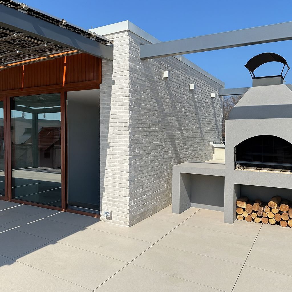 Grădina oferă un spațiu perfect pentru relaxare sau activități în aer liber. Terasa de la etaj detine instalatii pentru zonă de barbeque este ideală pentru petreceri cu prietenii sau mese în familie, având o priveliște plăcută asupra grădinii.