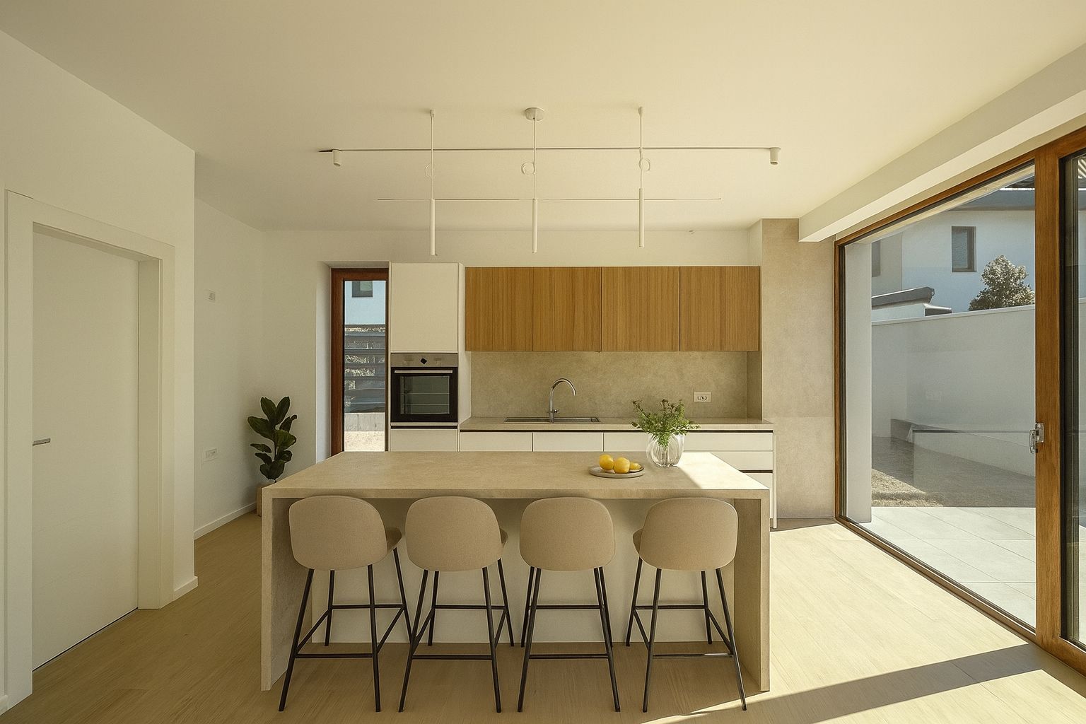 * Parter:Un living generos și luminos, perfect pentru petrecerea timpului în familie, o bucătărie modernă complet utilată, un birou care poate fi transformat în cameră de oaspeți și un grup sanitar.
