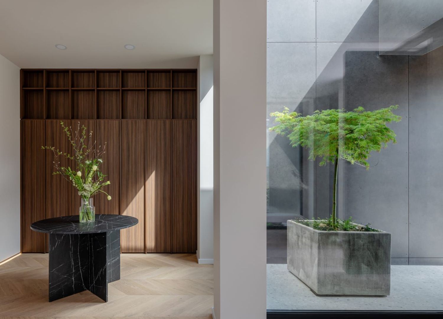 • atrium spectaculos cu copac integrat, ce aduce natura în inima casei
